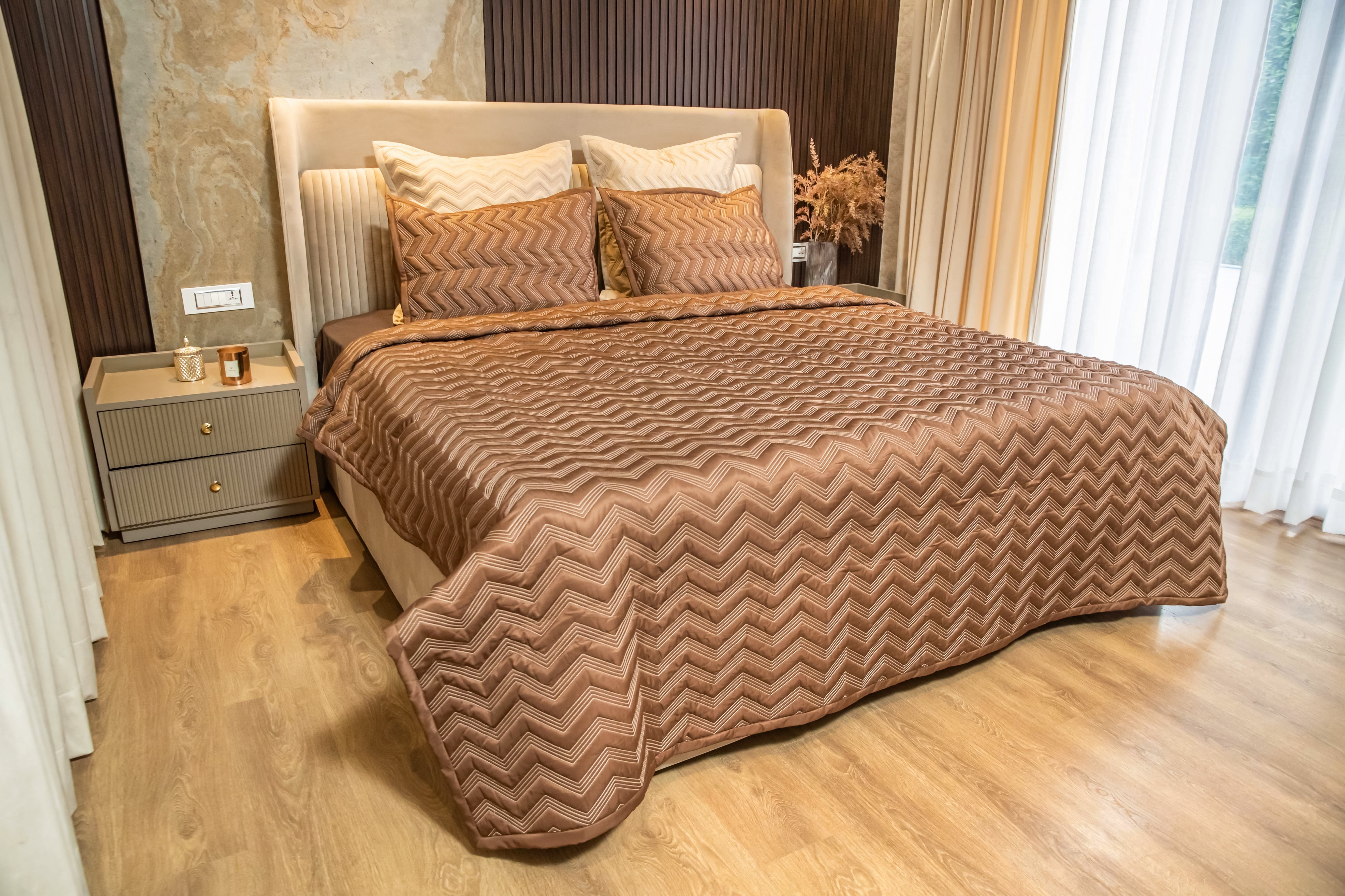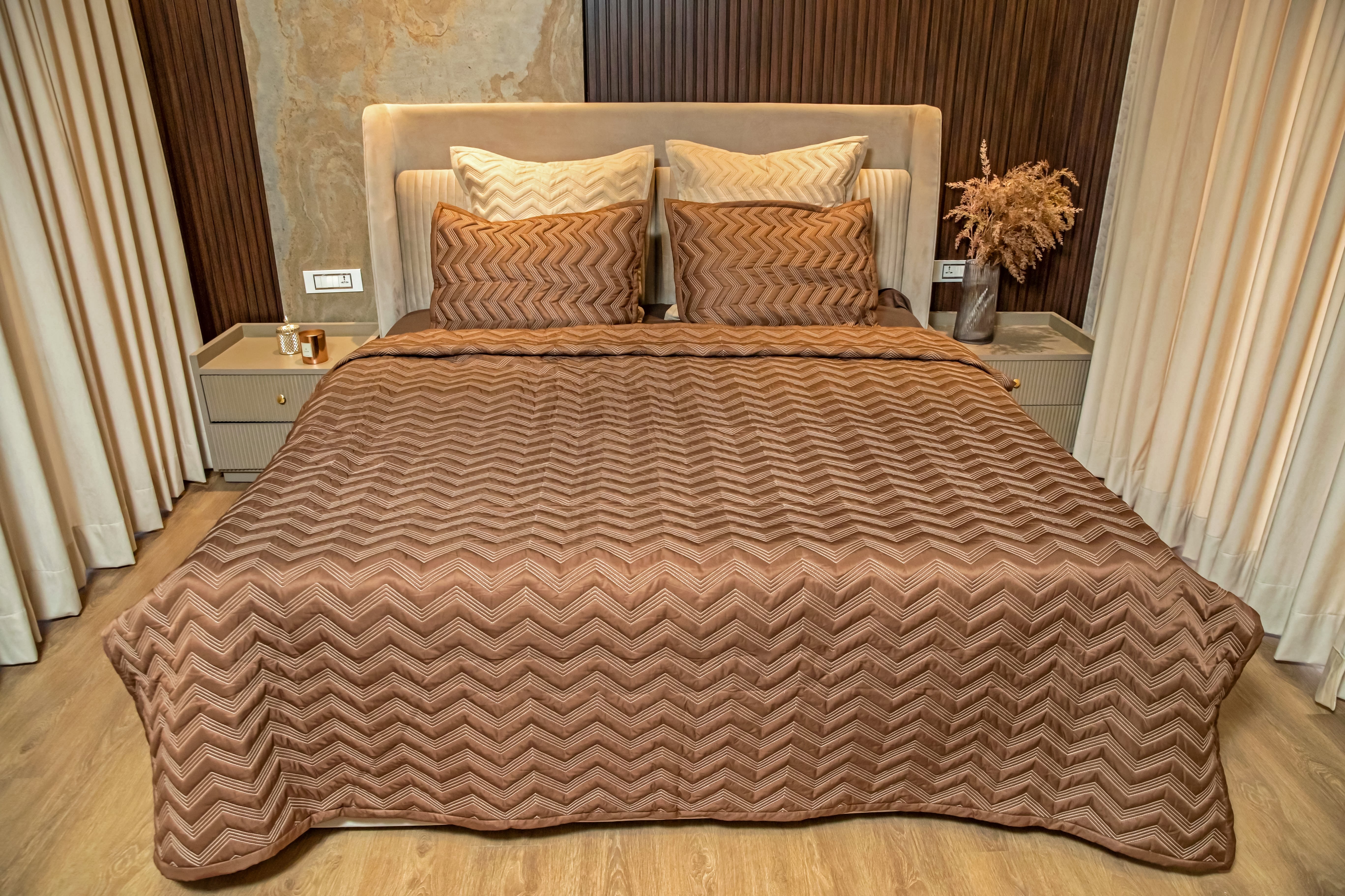 Bring warmth, style, and sophistication to your bedroom with our Brown Wave Quilted Bedspread. Designed with an elegant wave pattern in rich brown tones, this bedspread adds depth and texture to your space, instantly creating a cozy and luxurious vibe.