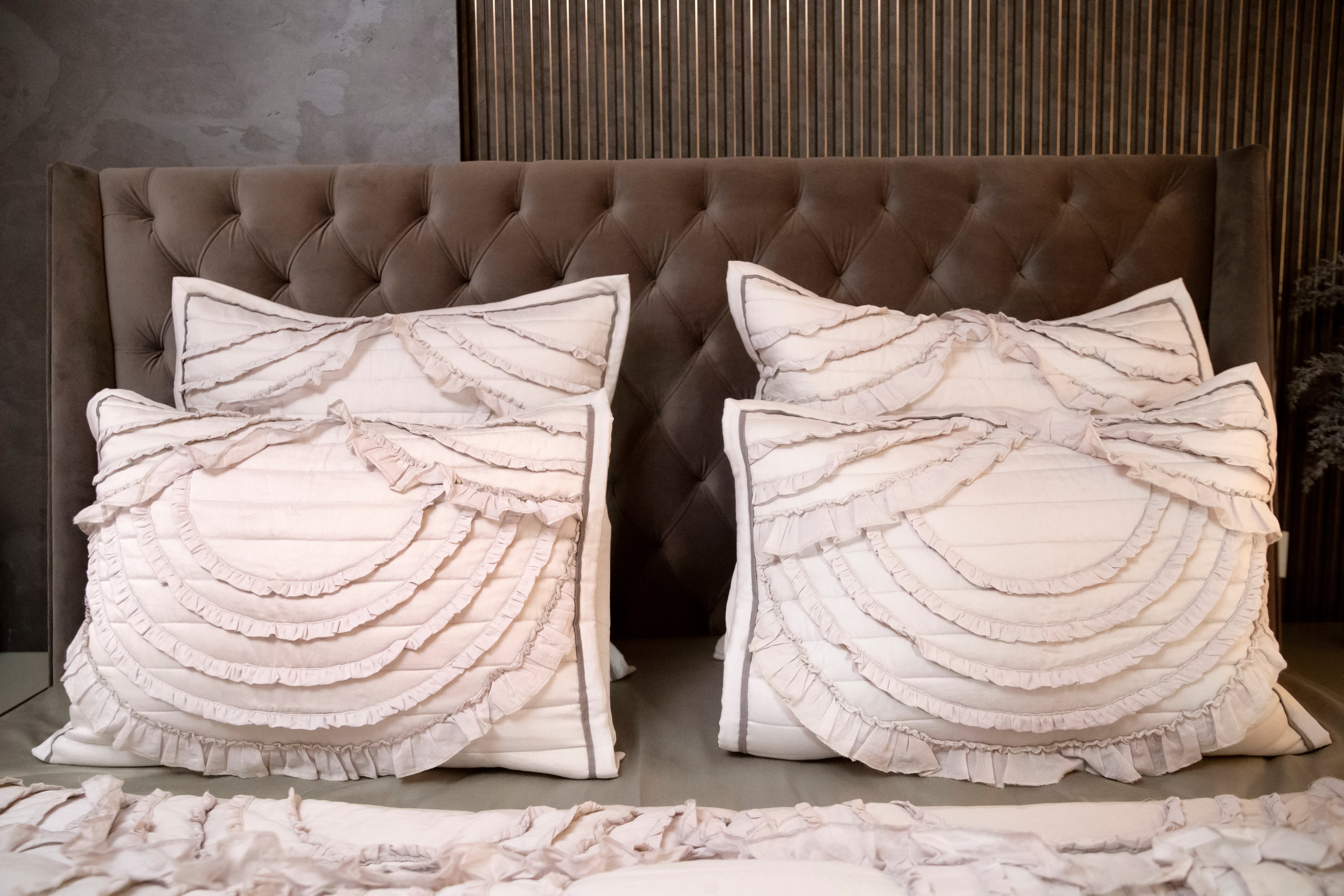 Elevate your bedroom with the timeless elegance of our Circular Frilled Bedspread. Featuring intricate circular frill detailing across the surface, this bedspread combines classic charm with contemporary style. The soft fabric and layered texture add a luxurious touch, making it a true statement piece for your home.