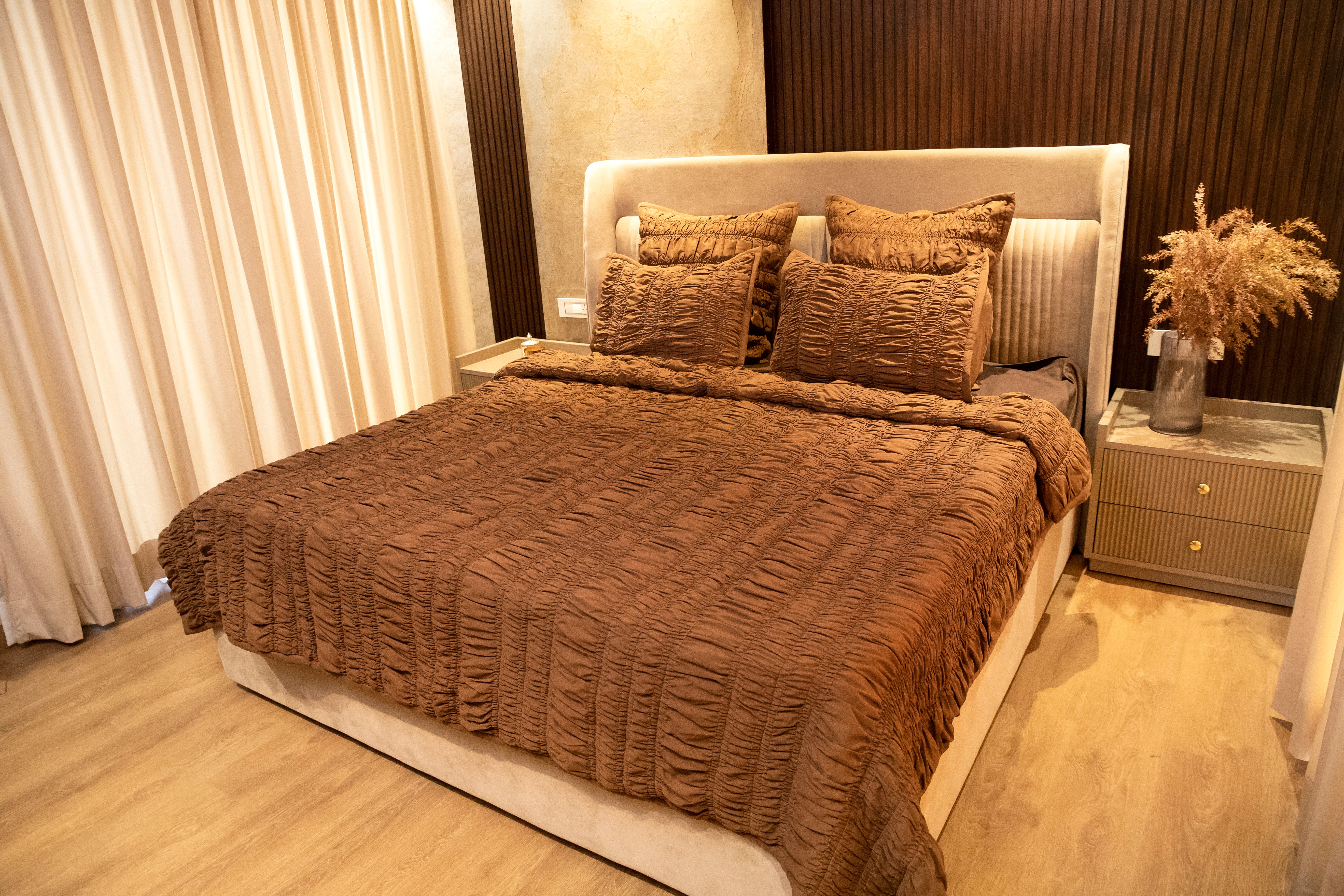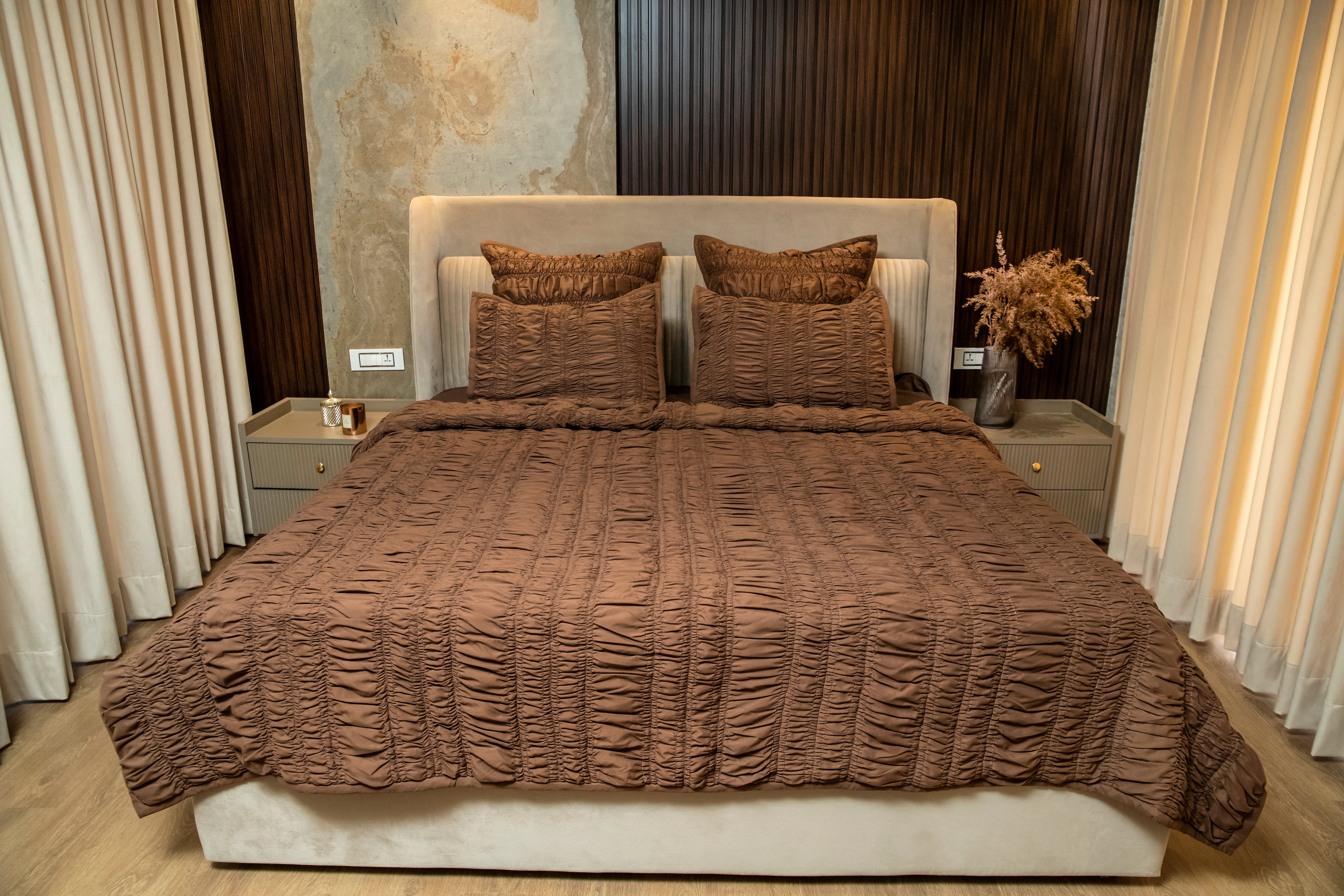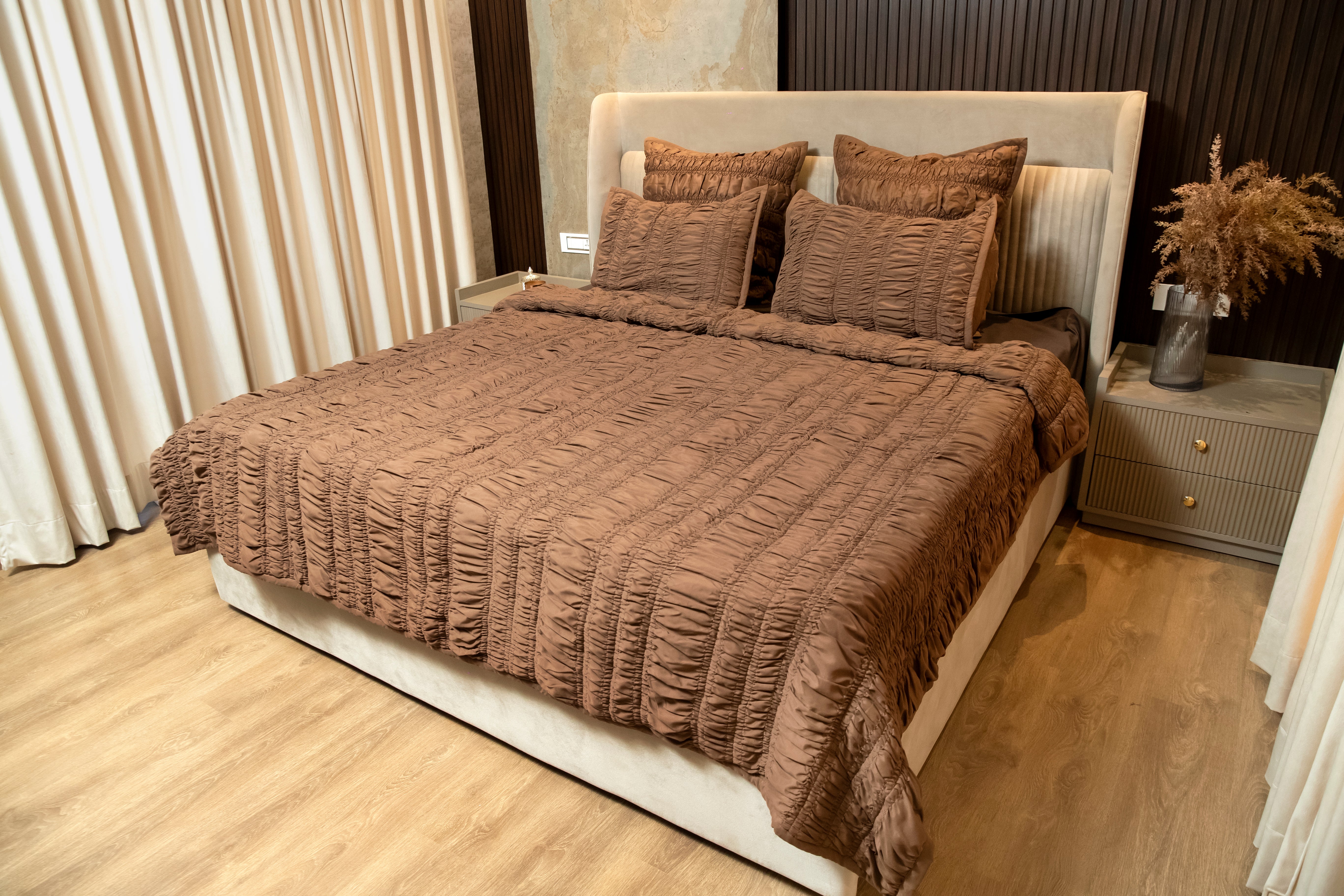 Bring effortless elegance and comfort to your bedroom with our Gathered Bedspread Quilt. Designed with delicate gathered detailing, this quilt creates a rich, textural look that instantly elevates your space. Its soft, breathable fabric offers year-round comfort while the lightweight yet cozy layering ensures restful nights.