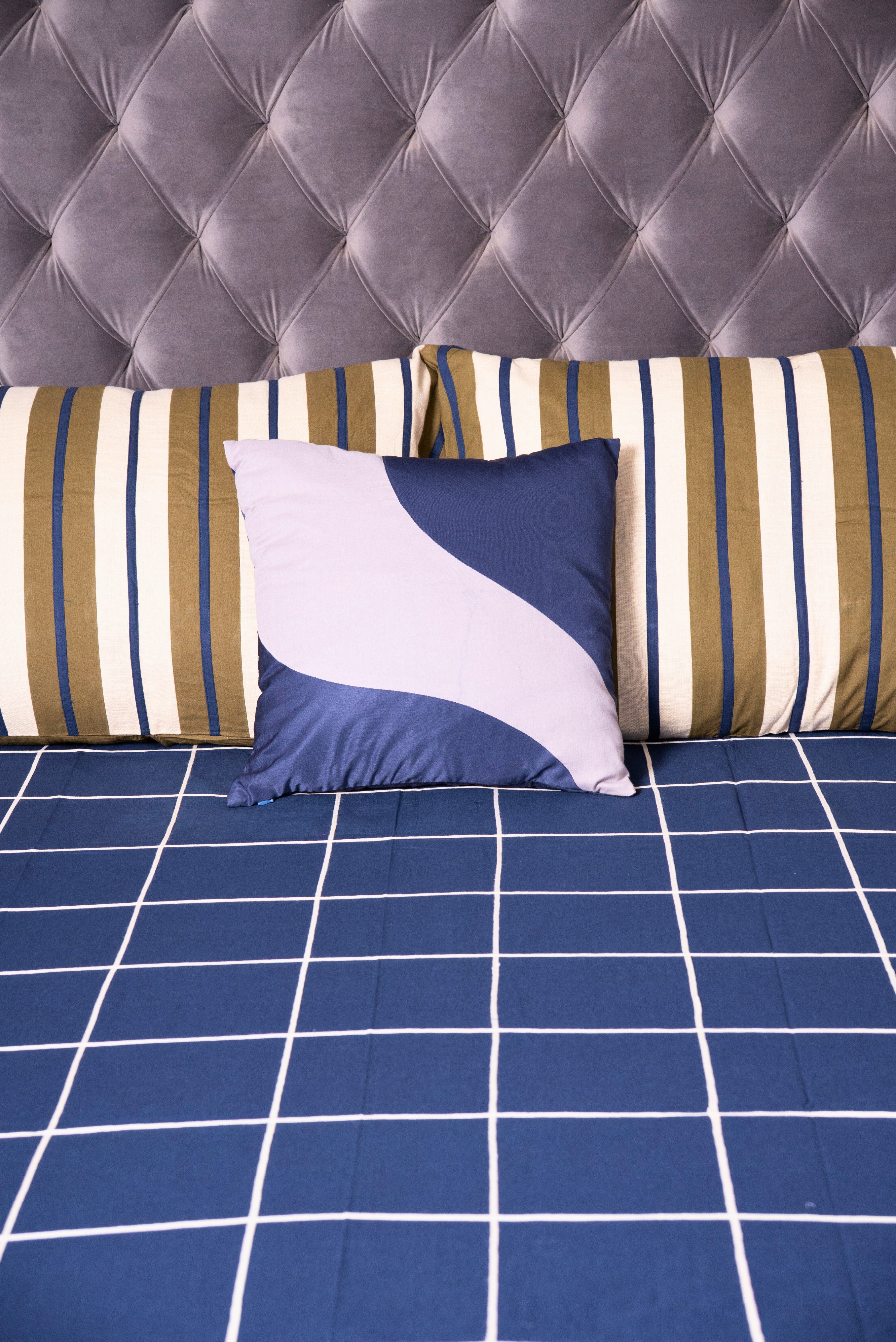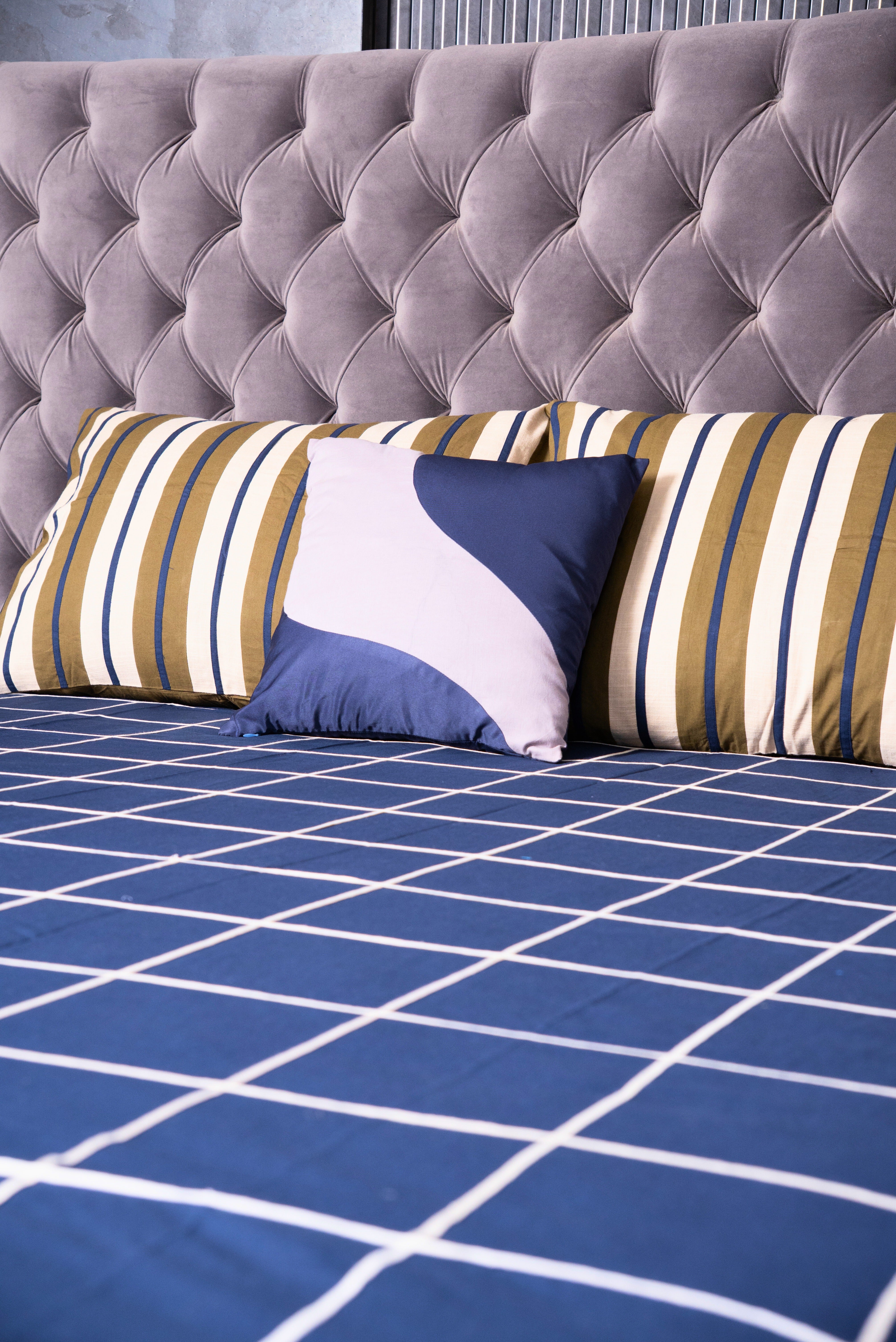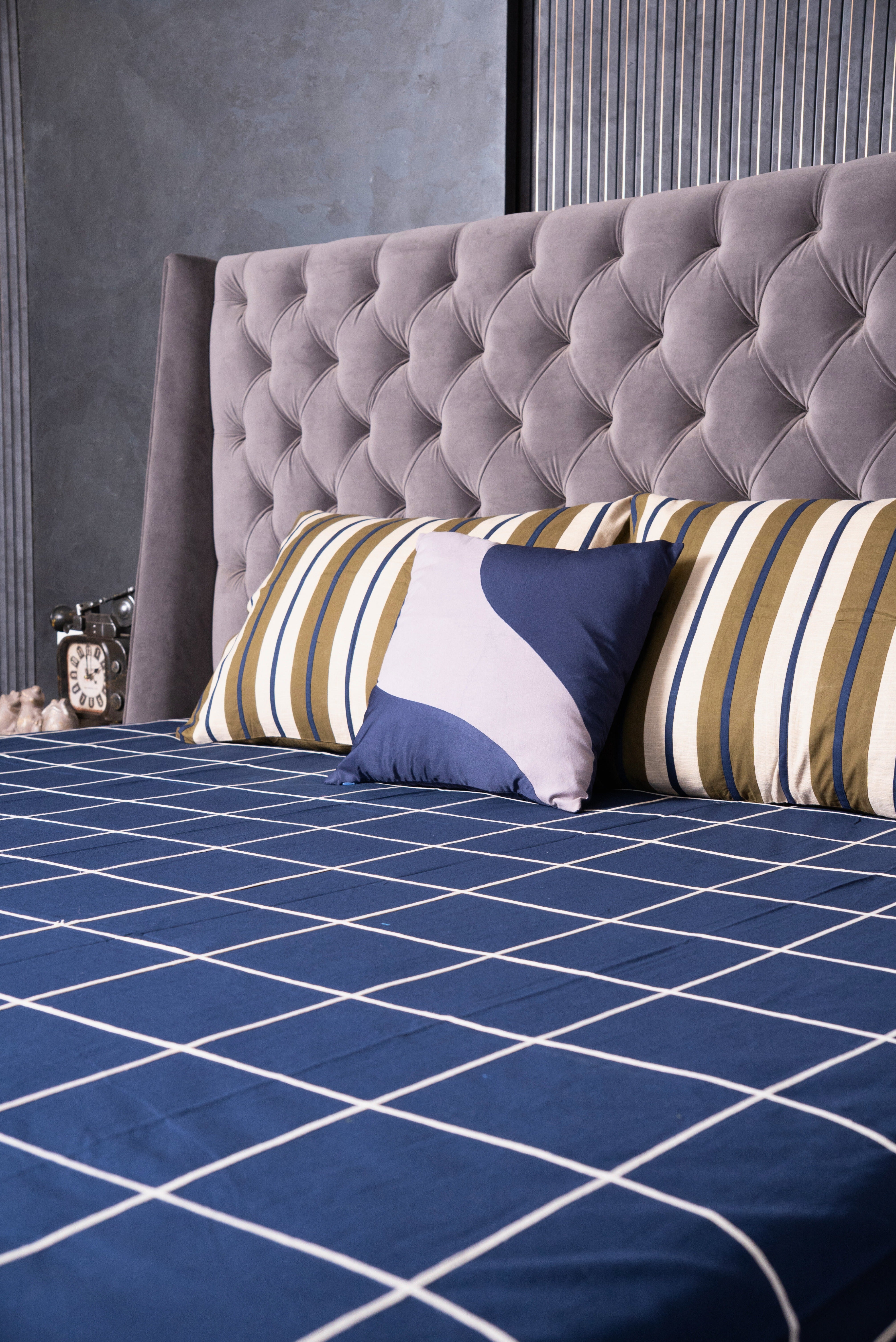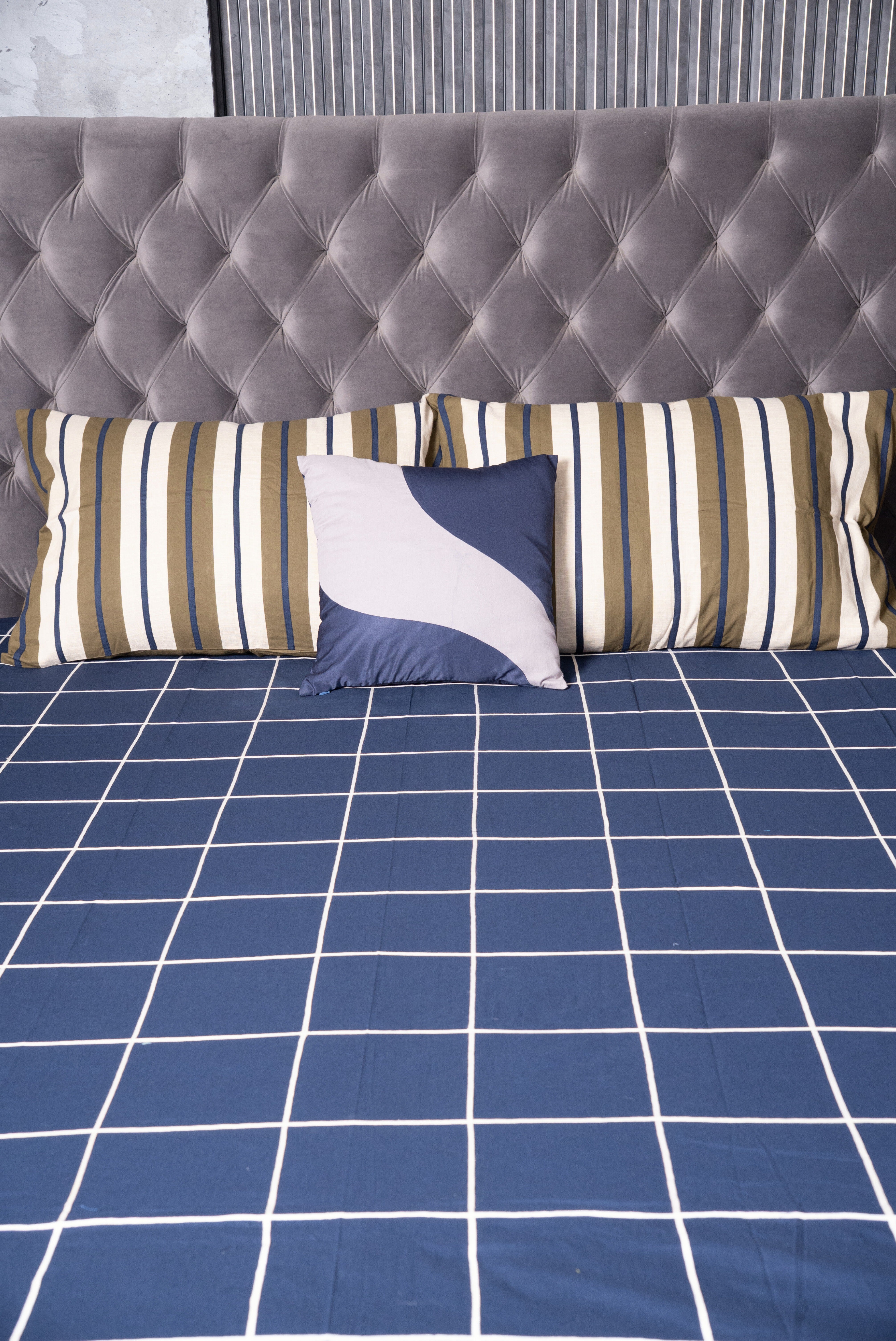 This one brings that quiet, confident vibe your bedroom has been craving. A deep navy base, clean white grid lines, and a smooth, snug fit that makes the whole space feel intentional. It’s the kind of bedsheet that looks put-together without even trying. Soft on the skin, easy on the eyes, and perfect for anyone who loves a modern, calm, keep-it-classy aesthetic. Lay it on, toss a few cushions, and watch the room level up instantly.